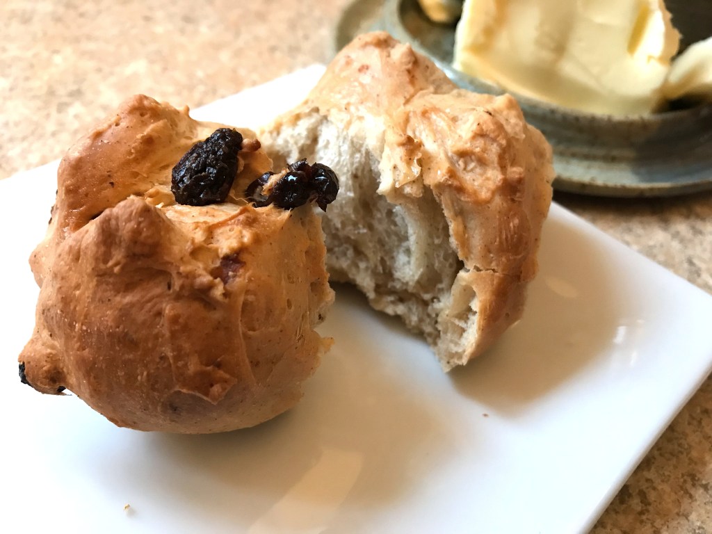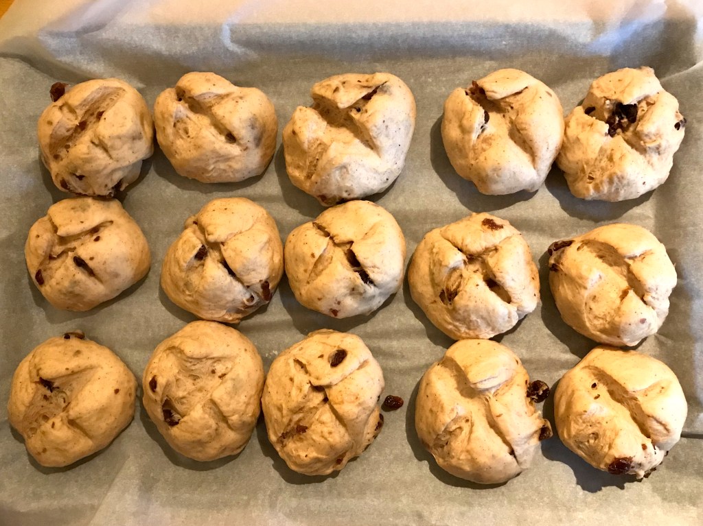 Fill your buns with extra spices: cinnamon, cloves and nutmeg. Cram them full of currants, raisins, dried cranberries, cherries or other dried or candied fruit. Top them with a simple scored cross or doughy cross, or add a sweet cross with icing, chocolate or cream. Glaze them or not. It doesn’t matter. Eat hot cross buns for Good Friday, for Lent or in the week before Easter. Whatever your preferences, whatever your traditions, hot cross buns are a yummy treat!