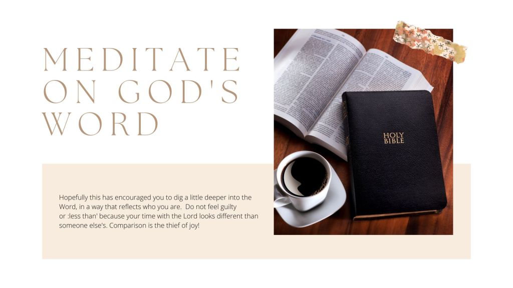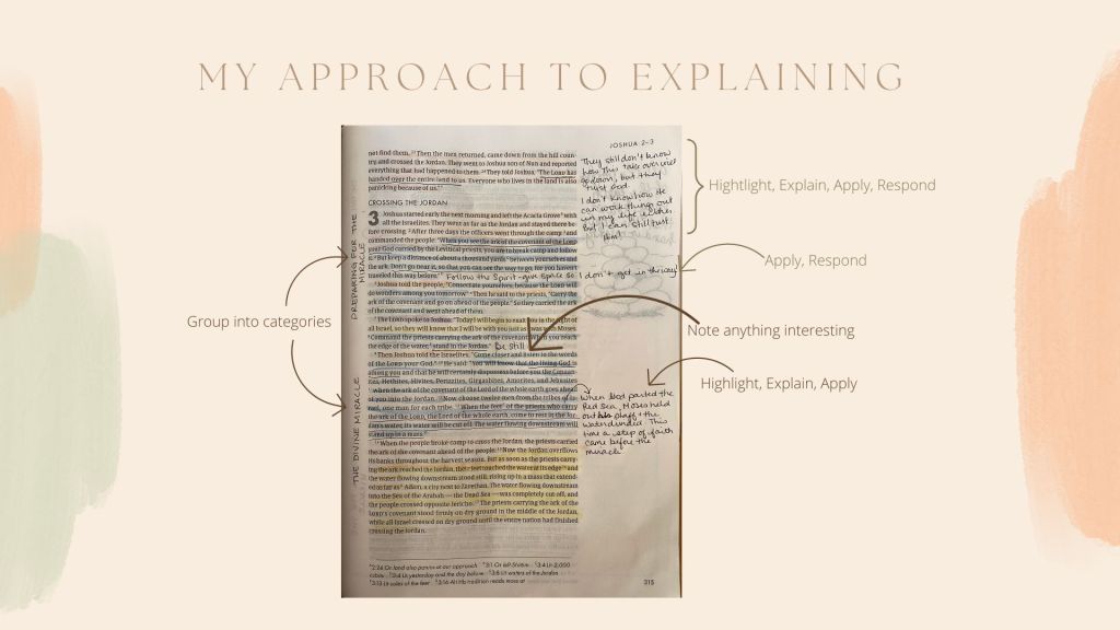 While I’m no authority on the subject of studying God’s Word, I do enjoy the process of digging deeper. I have practiced many approaches to Bible study, some that stuck and some that didn’t. Employing different methods is often necessary depending on the type of passage and these are all well and good, but they are just tools to aid me in thinking more deeply about what I am reading. After all, God’s Word is alive and active. I can read the same passage year after year, and something new will stand out to me. That’s because the Holy Spirit knows what I need to hear at any given time. He is there to teach us as we look to God’s Word.