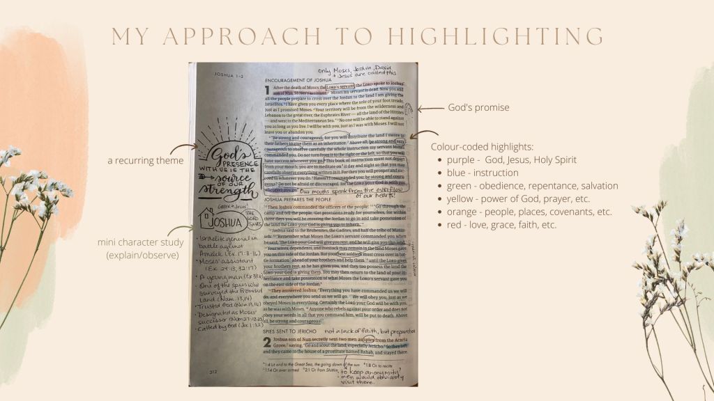 - I look for and mark repeating words or phrases, group verses into categories or give ‘titles’ to certain sections to sum up their main thought