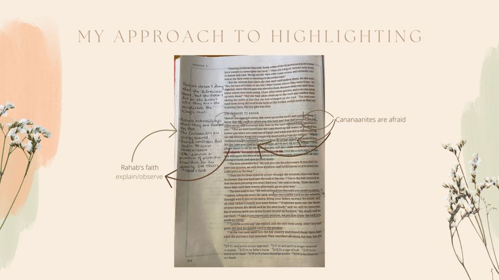 A typical study time for me these days doesn’t really rely on a particular method, but rather a system I tend to employ (more like guidelines…said in a gravelly Captain Barbossa tone, of course). To be clear, I do not do this every time I open my Bible (or Bible app). Sometimes I just read. And that’s okay, too! Most of all, I desire to make spending time with God a priority in my life.